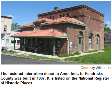 Interurbans were intercity electric railways popular 100 years ago - and, believe it or not, the Hoosier state had one of the most extensive systems in the entire country. The first interurban line in Indiana opened in 1898, from Anderson to Alexandria. The first interurban to Indy opened on New Year's Day in 1900 and brought passengers from Franklin and Greenwood to the Hoosier capital. Interurban lines connected small towns with most of Indiana's big cities and the cities with each other. Lines radiated from Indianapolis to Fort Wayne, Louisville, Lafayette, Peru, Terre Haute and Richmond (and six other routes). These interurbans then connected with others, reaching Chicago, Toledo, Columbus, and even farther. A separate hub centered on Evansville.